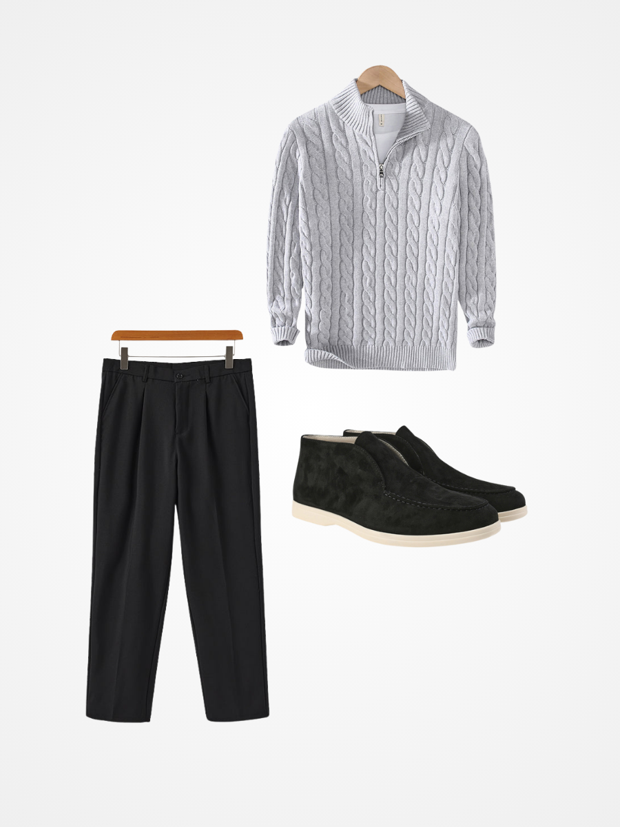 Deze zorgvuldig samengestelde combinatie brengt comfort en klasse samen, zodat je moeiteloos verfijnd voor de dag komt, of je nu dineert in de stad of een avondwandeling maakt door de kou.